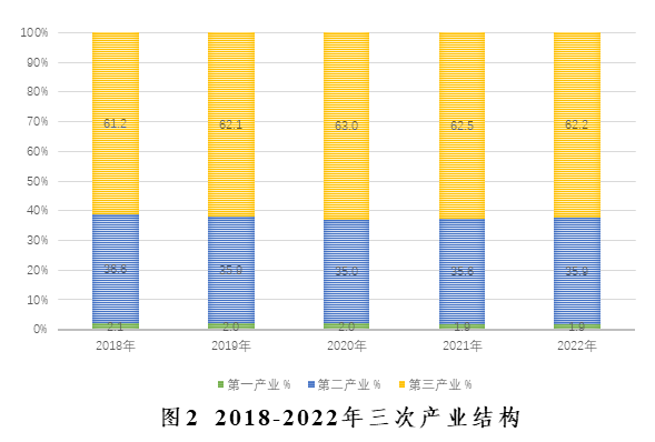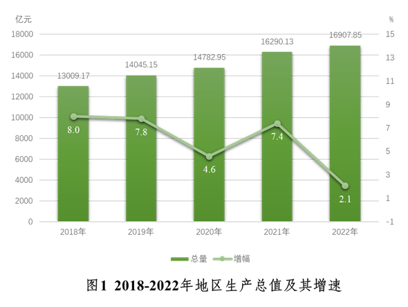 经济总量继续扩大。初步核算,全年实现地区生产总值[2] 16907.85亿元,比上年增长2.1%。其中,第一产业增加值315.56亿元,增长3.4%;第二产业增加值6069.64亿元,增长1.7%;第三产业增加值10522.65亿元,增长2.2%。三次产业结构调整为1.9:35.9:62.2。人均地区生产总值178781元,比上年增长1.1%。