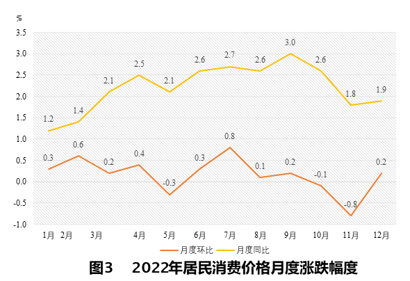 表1 2022年居民消费和商品零售价格涨跌幅度(单位:%)